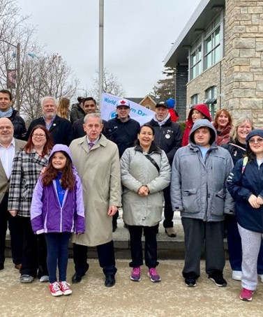 Stouffville, 10:00 AM, community flagpole, at the Community Centre at 2 Park Drive, Stouffville